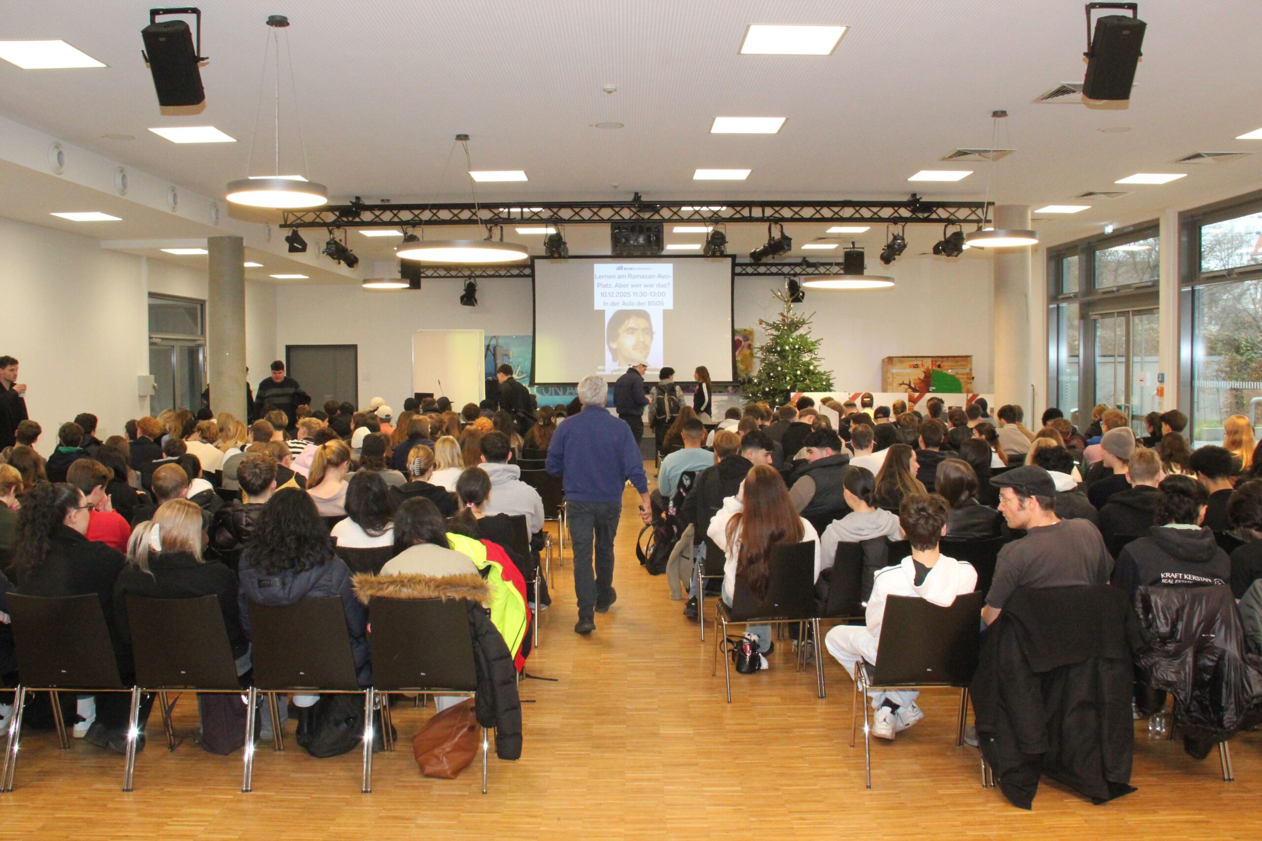 Schülerinnen und Schüler des 12. Klasse (S1) des Wirtschaftsgymnasiums an der BS 05 haben mit ihrem Lehrer Tim Steltner zu dem Thema recherchiert und stellten ihre Ergebnisse nun bei einer informativen, berührenden und aufrüttelnden Schulveranstaltung am Standort Landwehr – nahezu in Sichtweite des damaligen Tatorts – vor. Dabei machten sie deutlich, dass der Name Ramazan Avcı auch 40 Jahre nach dem Mord ein wichtiger Teil Hamburgs ist. Gülistan Avcı, die damals etwa so alt war wie die gut 200 versammelten Schülerinnen und Schüler, berichtete emotional von ihren damaligen Erlebnissen und ihrem Allein-Gelassen-Sein und brachte ihren Wunsch zum Ausdruck, ihr Mann möge auch künftig nicht vergessen werden: „Er war ein guter Mensch.“